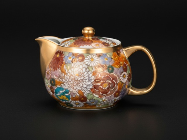 【商品名】 ポット急須 金花詰 AP8-0464 — 九谷焼・伝統工芸の手仕事で紡ぐ至高のティーポット(茶こし付き/約400ml) 【概要】 華やかな金彩と深みある絵柄が目を引く、九谷焼のポット急須。 上品で和の趣あるデザインは、来客時や特別なひとときのお茶にぴったり。 容量約400ml、茶こし付きで、ご家庭の食卓やギフトとしてもおすすめです。 --- こんな人におすすめ - 和の雰囲気を大切にするお茶時間を楽しみたい方 - 来客用やお祝い・贈答用に贅沢な器を探している方 - 普段使いにはもちろん、食卓や和室に映える器をお探しの方 --- 仕様・サイズ等 | 項目 | 内容 | |------|------| | 容量 | 約400 ml | | 素材 | 磁器(九谷焼) | | 付属 | 茶こし付き | | 表面 | 金彩仕上げ — 華やかで高級感あり | | ご使用上の注意 | **金彩のため電子レンジ・食洗器の使用はできません。** 使用後はやさしく手洗いしてください。 | | 用途 | 日本茶、ほうじ茶、中国茶など / 来客用・贈答用にもおすすめ | --- おすすめの使い方 & テーブルコーディネート この急須は、 **和室や畳のある空間、お座敷、和モダンなダイニングやリビング** によく映えます。 たとえば、無地の茶碗(白または淡色)や木製のお盆、和紙のコースターを合わせると、金彩の華やかさが引き立ち、お茶時間がとても趣深くなります。 お祝い事や日本茶を贈りたい方へのギフトとしても喜ばれます。 --- ご注意ください - 金彩のため、**電子レンジ・食洗器はご利用いただけません。** - 陶器はひとつひとつ手作りのため、色味や風合い・模様の出かたに個体差があります。写真と完全に同じではないことをご理解ください。 - 贈答用としてお使いの場合は、ラッピングや箱入れをご希望の方はお気軽にご相談ください。 --- この器で、落ち着いた時間、お茶の時間を少し特別に —。