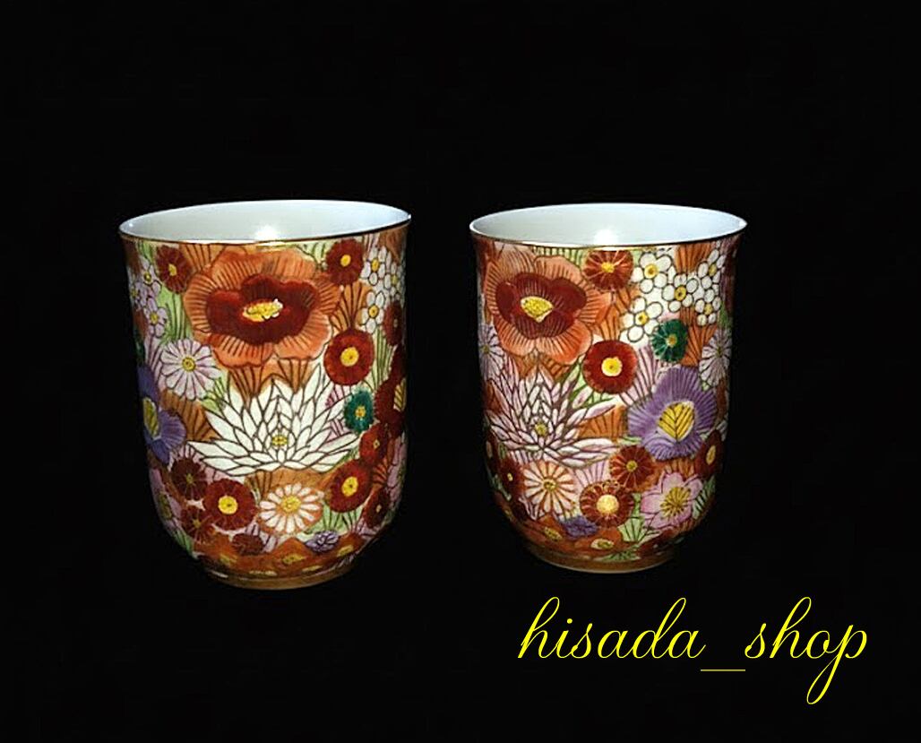 華やかな金彩と、九谷焼ならではの深い色絵が調和した「組湯呑 金花詰」。