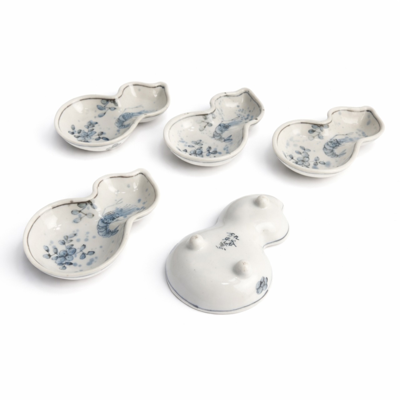 瓢箪型小鉢揃 染付海老 万平窯