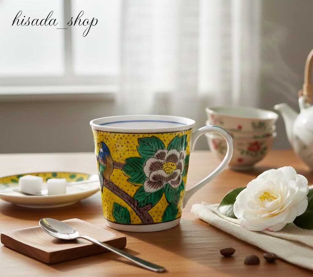 華やかでありながら落ち着いた雰囲気が魅力のマグカップです。伝統的な 吉田屋風の牡丹と鳥のモチーフ が丁寧に描かれており、自然の美しさを感じさせるデザインです。職人の手による仕上げが、日常のコーヒーやお茶の時間を特別なひとときにしてくれます。250cc 程度の使いやすいサイズ感で、毎日の生活に自然に寄り添う一品です。